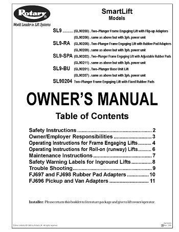 Rotary Lift - Service Parts