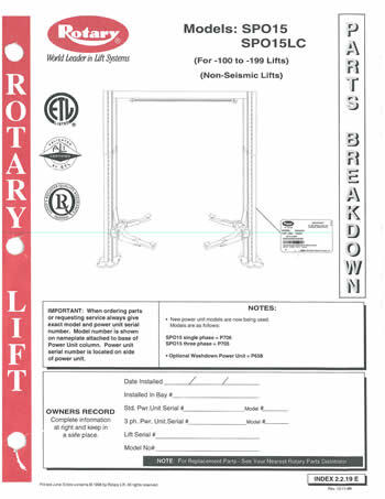 Rotary Lift - Service Parts