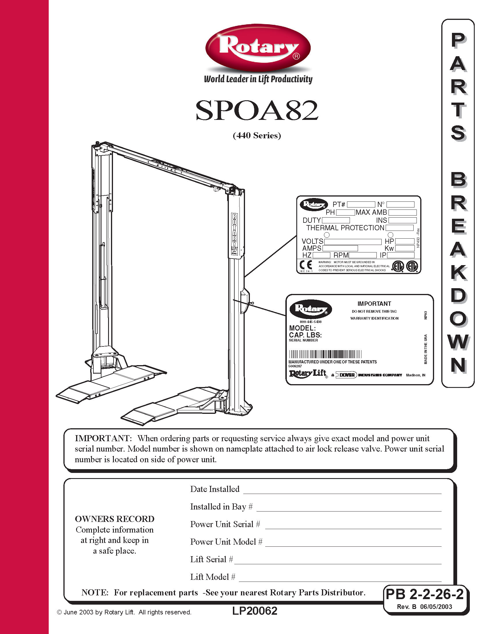 Rotary Lift - Service Parts