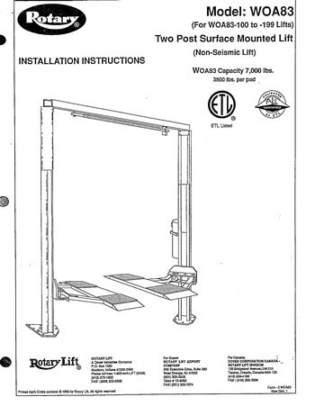 Rotary Lift - Service Parts